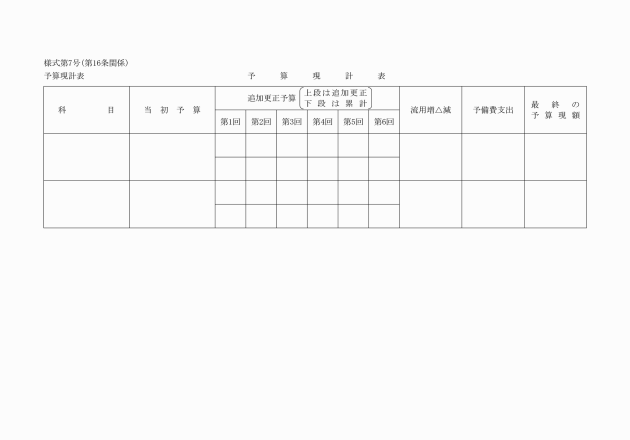 第7号(規則第16条)予算現計表