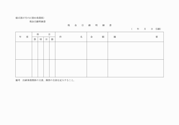 第37号の2(規則第83条)現金引継明細書
