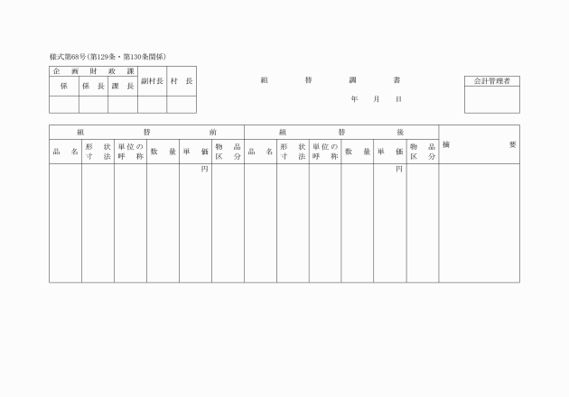 2 予算の流用を必要とするときは、費目流用伺(様式第12号)により村長の決裁を受けなければならない。