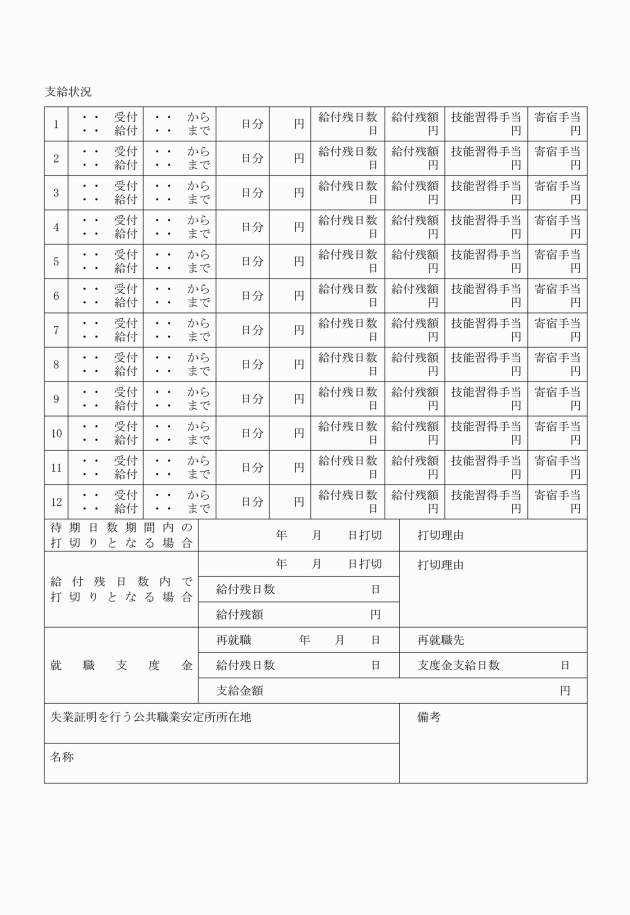 第12条 支給条例第15条に規定する退職手当(以下「基本手当に相当する退職手当」という。)の支給を受けようとする者は、退職当時所属していた組織団体の長(以下「所属組織団体長」という。)が作成した職員退職票(支様式第16号。以下「退職票」という。)の交付を受けなければならない。