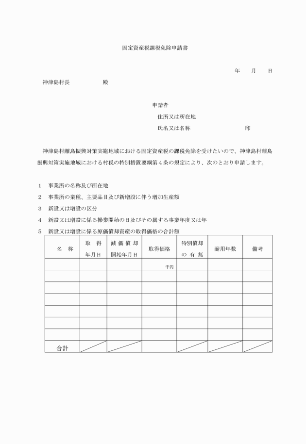 第4条 第2条の規定による課税免除を受けようとする者は、村長に課税免除の申請をしなければならない。