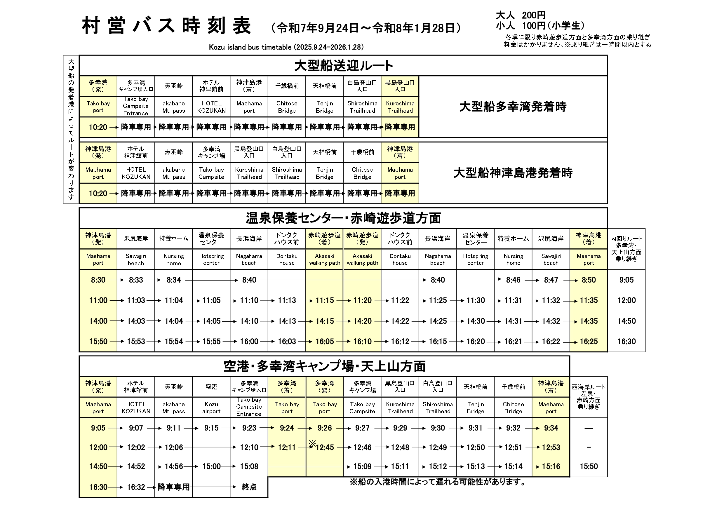 注:バスの時刻表は各交通機関等の発着時間の発表後に作成となるため、事前のお知らせは、概ね約1ヶ月前となりますのでご容赦下さい。