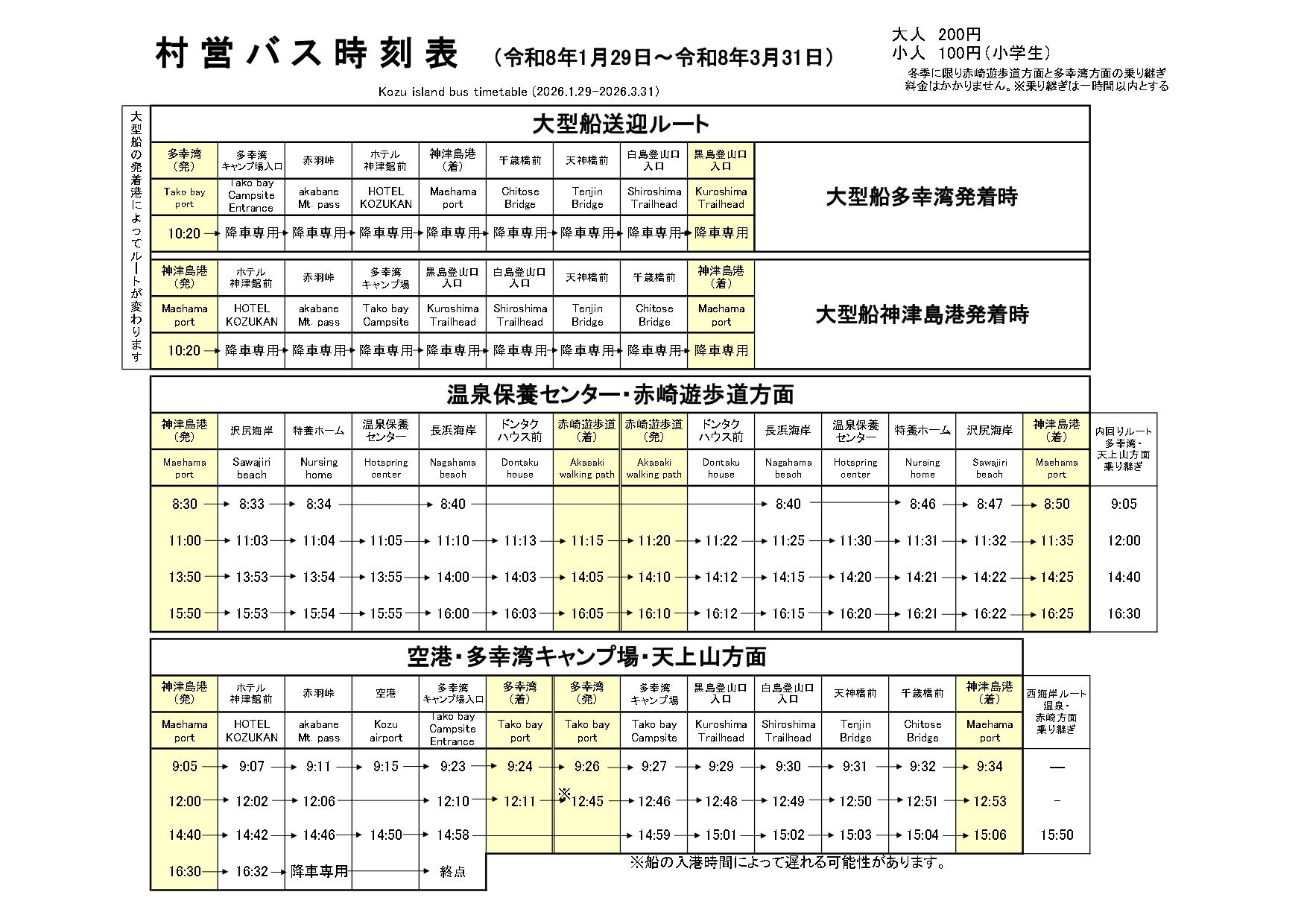 村営バスは島内の様々なルートを運行しております。時刻表(JPEG画像)は下記リンクからご覧いただけます。